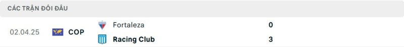 Thành tích đối đầu của Racing Club vs Fortaleza