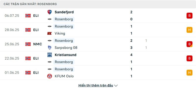 Thống kê phong độ gần đây Rosenborg vs HamKam