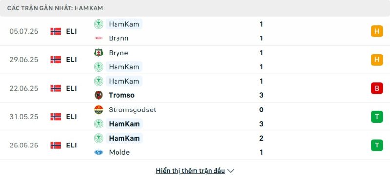 HamKam đang nỗ lực thoát khỏi khu vực cuối bảng và trận hòa 1-1 trước Brann ở vòng đấu gần nhất là một bước tiến nhỏ trong hành trình đó. HLV Jakob Michelsen vẫn đang duy trì tinh thần thi đấu tích cực cho các học trò, dù hiệu quả còn hạn chế. Sau trận thắng bất ngờ 2-1 trước Molde, HamKam lại chững lại với các kết quả hòa và thua đan xen. Dù vậy, phong độ của họ không đến nỗi tệ khi xét tới hoàn cảnh và khả năng tạo bất ngờ vẫn là điều không thể loại trừ khi HamKam thi đấu với tinh thần quyết liệt.