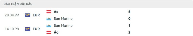 Thành tích đối đầu của San Marino vs Áo