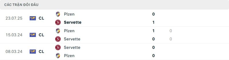 Bảng Tỷ lệ kèo bóng đá Servette FC vs Viktoria Plzeň