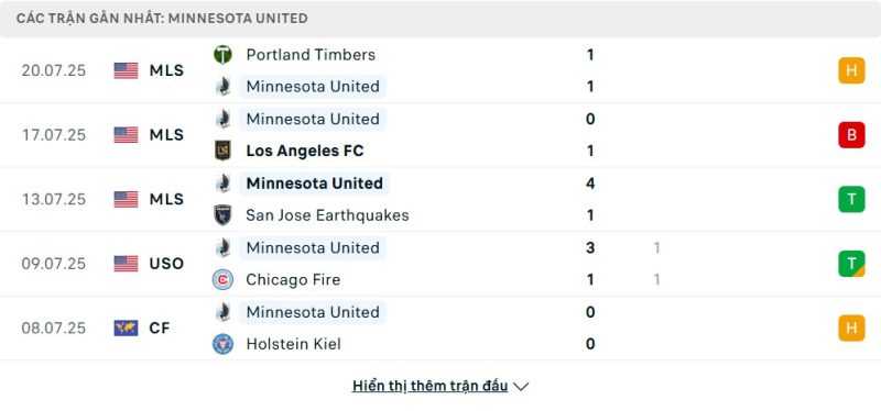 Bên kia chiến tuyến, Minnesota United đang đứng trong top 3 miền Tây và là một trong những đội có phong độ ổn định nhất giải tính đến thời điểm này. Dù vừa bị Portland cầm hòa, nhưng họ đã thắng 3/6 trận gần nhất và sở hữu hàng công thuộc nhóm hiệu quả nhất khu vực. Trên sân khách, Minnesota vẫn giữ được bản sắc chơi pressing hiện đại và phản công tốc độ. Với vị thế hiện tại, họ có lý do để đặt mục tiêu 3 điểm trọn vẹn trong chuyến làm khách đến St. Louis.