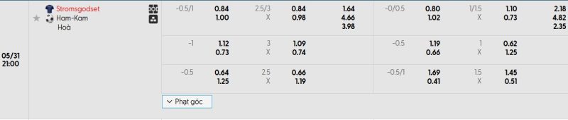Bảng Tỷ lệ kèo bóng đá Strømsgodset vs HamKam