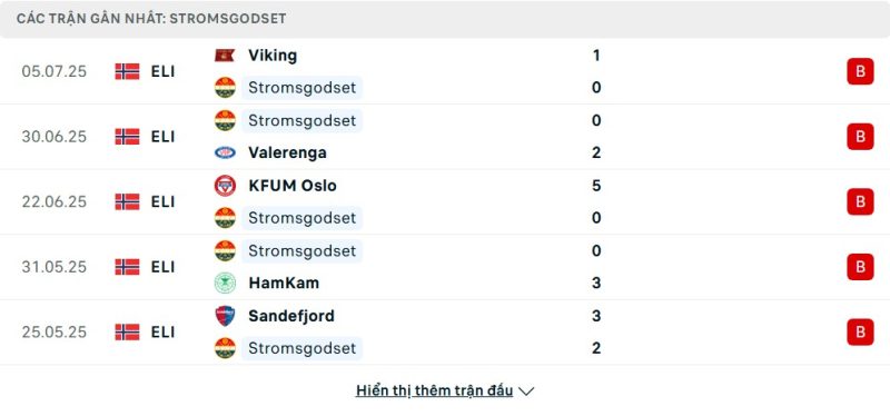 5 trận gần nhất của Strømsgodset: L-L-L-L-L