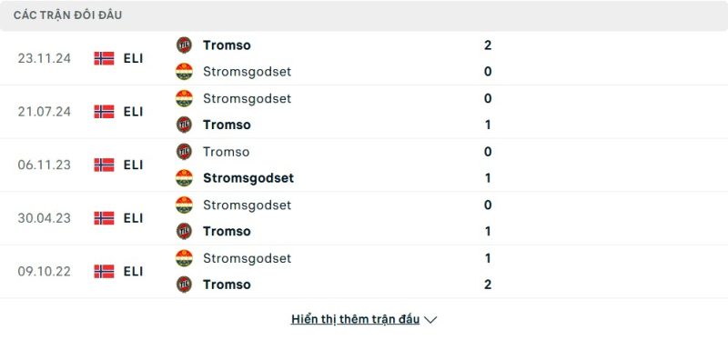Thành tích đối đầu của Strømsgodset vs Tromsø