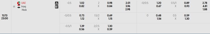 Bảng Tỷ lệ kèo bóng đá UAE vs Iraq