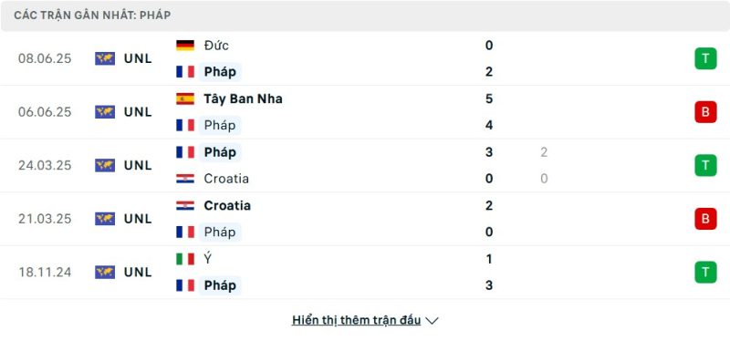 5 trận gần nhất của Pháp: W-L-W-L-W