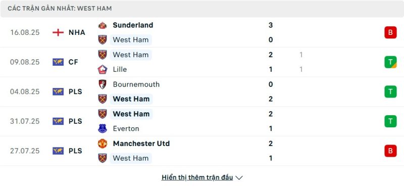 - Phong độ của West Ham United